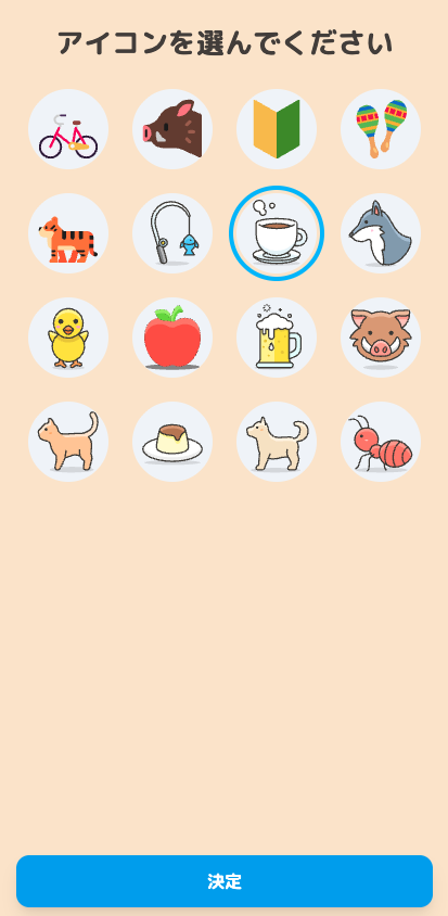 用意されたアイコンの中から、好きなものを1つタップして選びます。