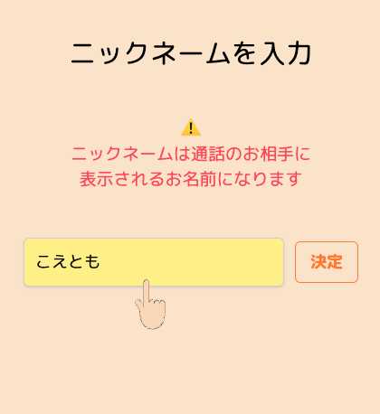 はじめに、お相手に表示される名前を入力します。 本名である必要はありません。