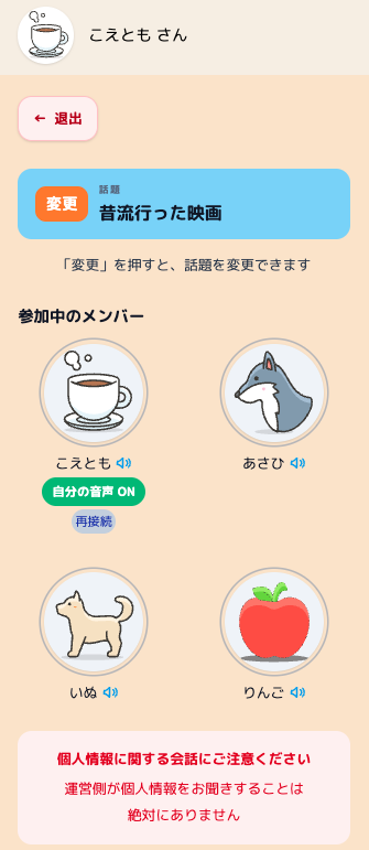 入室後、話題はどなたでも変更できます。